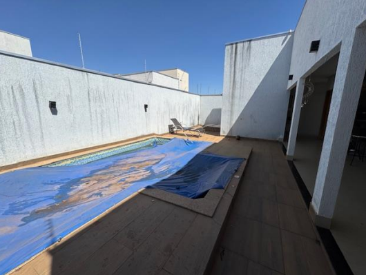 Benfeitoria não averbada: uma casa residencial térrea, construída em cerca de 85% da totalidade do lote, composta por: garagem para quatro carros; uma sala ampla com rack e painel de TV; três quartos, sendo os três com suítes, todos compostos por armários planejados; um banheiro social; uma cozinha; área de churrasco com churrasqueira e bancada americana; uma piscina grande retangular; área de serviço com despensa e banheiro. Ressalta-se que a casa encontra-se em bom estado de conservação, com qualidade de construção de média a alto padrão e móveis planejados, necessitando de pequenas reparos e pintura. Ademais, o forro de gesso da sala está comprometido, vez que caiu e não foi restaurado. Avaliação: 550.000,00 (quinhentos e cinquenta mil reais) "
