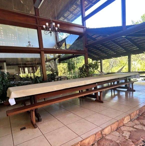 Bem (ns): "1-(01) Uma Mesa em Madeira Amburana, para 20 lugares, com dois bancos em madeira, medindo aproximadamente 6,00x1,20m, em excelente estado de uso e conservação, avaliada em R$ 25.000,00 (vinte e cinco mil reais);