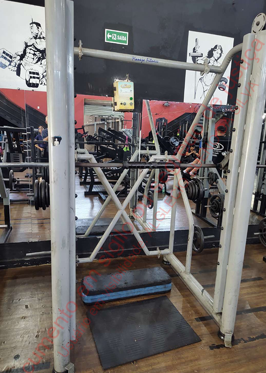 3) um aparelho cross smith, para musculação, marca Manejo Fitness. Em bom estado de conservação, avaliei em R$ 5.100,00. "